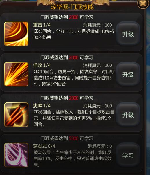 7.部分门派的技能截图: