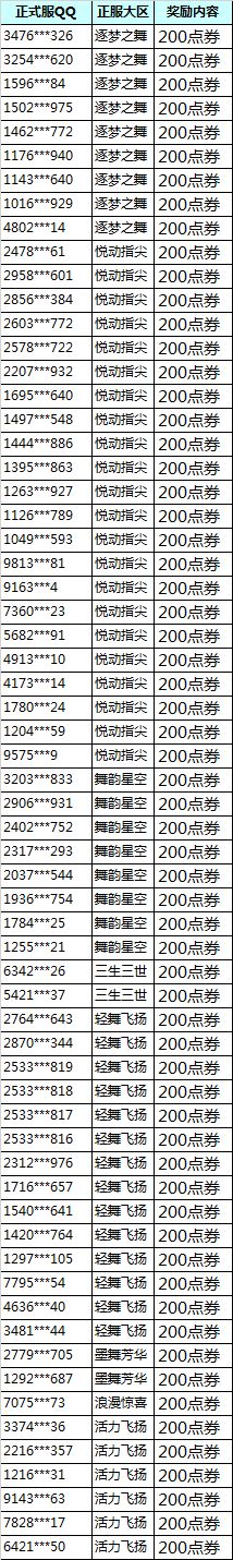 以下为获得体验服反馈奖励的玩家名单【第一期】(持续更新中)