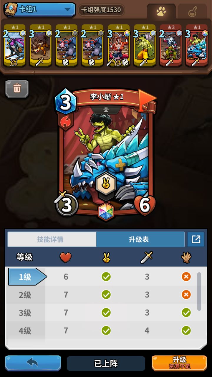李小蜥,这卡这么说呢,请你无视二技能,因为没什么用,这个牌是一个可以用到后期的一张牌,前期也可以当前排,3水晶6生命值3攻击力,和一般白级前排差不多,可注意3级以后! 就有长手了! 4级7❤4攻,性价比一下子就出来了,比长手怪要好一些,而且还有吊炸天的特效!所以这一张牌值的培养,到3级就差不多了,不必要到4(毕竟需要一个彩,前期吃不消)。然后我们看看猫咪的牌子🙈