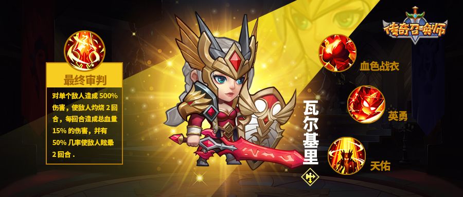 瓦尔基里是强化版的天启者,再加上斧王保护机制和F2晕眩能力,三者综合,辅助能力更为强大。技能为单体,顺位攻击,有一定伤害但更多在于灼烧和晕眩。其他技能则为提高英雄的防御和反击能力,同时为队友提供多项支持保护。其中暴击加成和快速获取怒气尤为显著,与暴风之女搭配更佳,每一箭造成暴击都有50%概率恢复怒气,基本能做到回回满怒技能不断。所以瓦尔基里在属性搭建方面,常规推荐考虑血量、免暴、免伤、抗性,使用守护雕像。