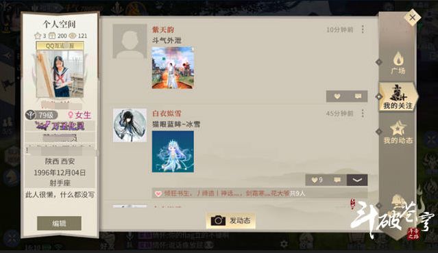 为了加深斗者之间的交流与联系,在斗气大陆上也有一个“个人空间”功能。在这里你可以晒出你的日常,与其他斗者进行讨论。快来看看斗者们都在聊什么吧!