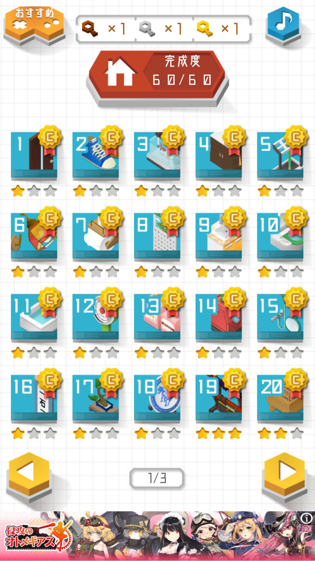 通关了,怎么没有提示?还多出来几把钥匙,没满星提示c是什么意