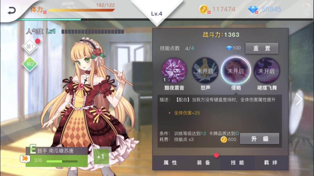 绝对音域中社员的一技能都是优先提升的,因为一技能在战斗中是手动释放的,他能带来的效果最直接,部分一技能可以短暂提升输出能力,提升生存能力,群体回复,群体控制等等足以左右比赛。