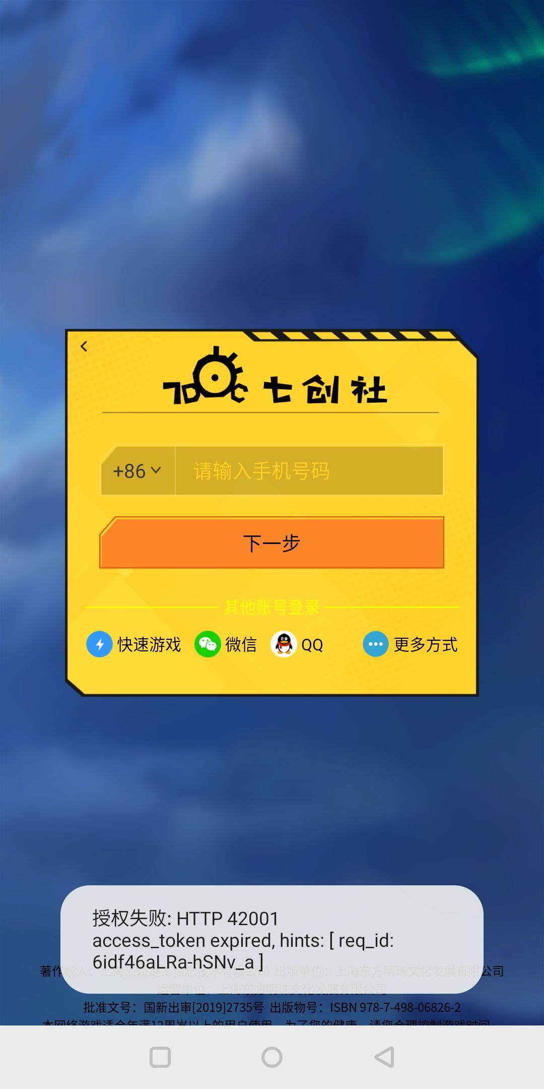 又咋回事,又进不了,什么个情况呀?我用微信登录的,居然失败,授权失败,就是进不去,我还咋继续氪呀,真庆幸我还没开始氪……