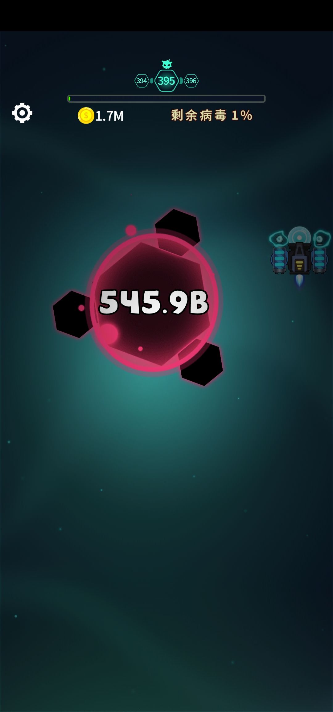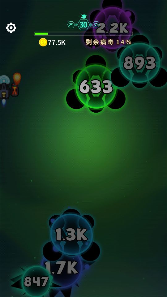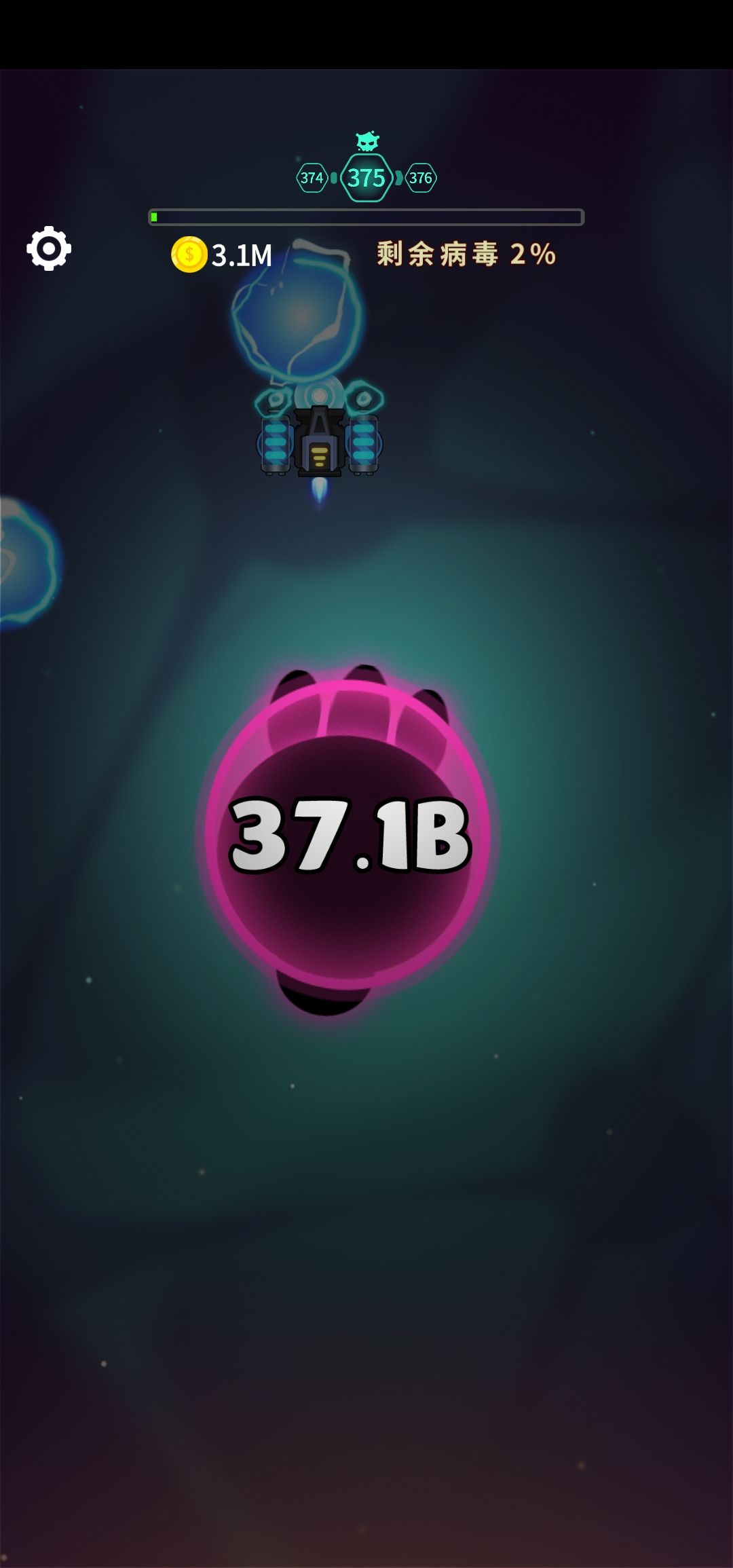 在关卡中,击杀最小体积的病毒(蝌蚪例外暂不考虑)会掉落金币,一般每只掉落1~4个。该科技每提升1级,面板值+6。楼主目前为Lv450(2700)。按楼主的面板值,击杀病毒每获得1个金币,关卡内的金币池💰+2700,击杀一个小病毒获得3个金币,💰+8100=0.81k。这项科技点上去是非常划算的。楼主目前在419关,为同化病毒刷钱关(版本V1.4.4),一把能稳定4M以上,有时点石成金多了能有10M以上(未计算广告倍数)。