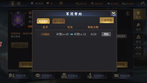 注意!“军团帮助”是属于军团系统的功能,未加入军团不可使用“军团帮助”,如果想要使用“军团帮助”,那就快加入军团吧。