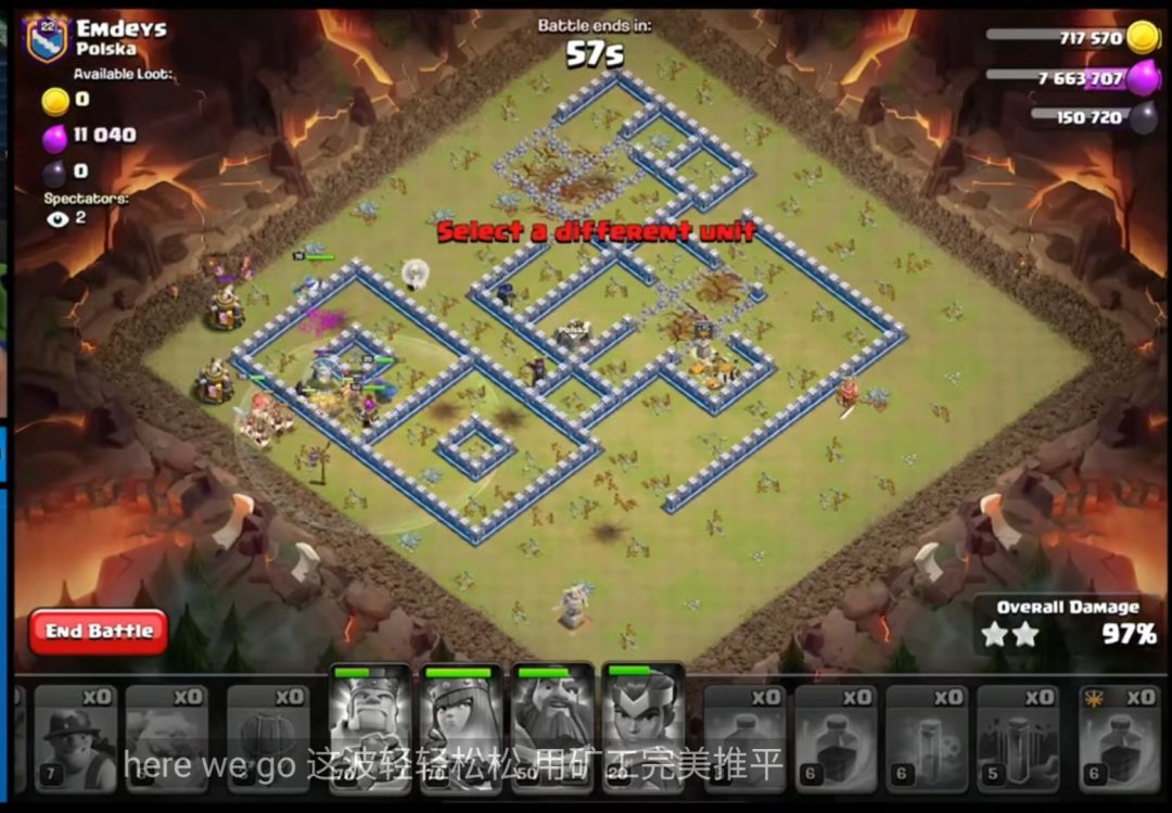 天女清掉援兵鸟炮配合蛮王形成矿工走廊,永王加援兵矿工三点钟放出