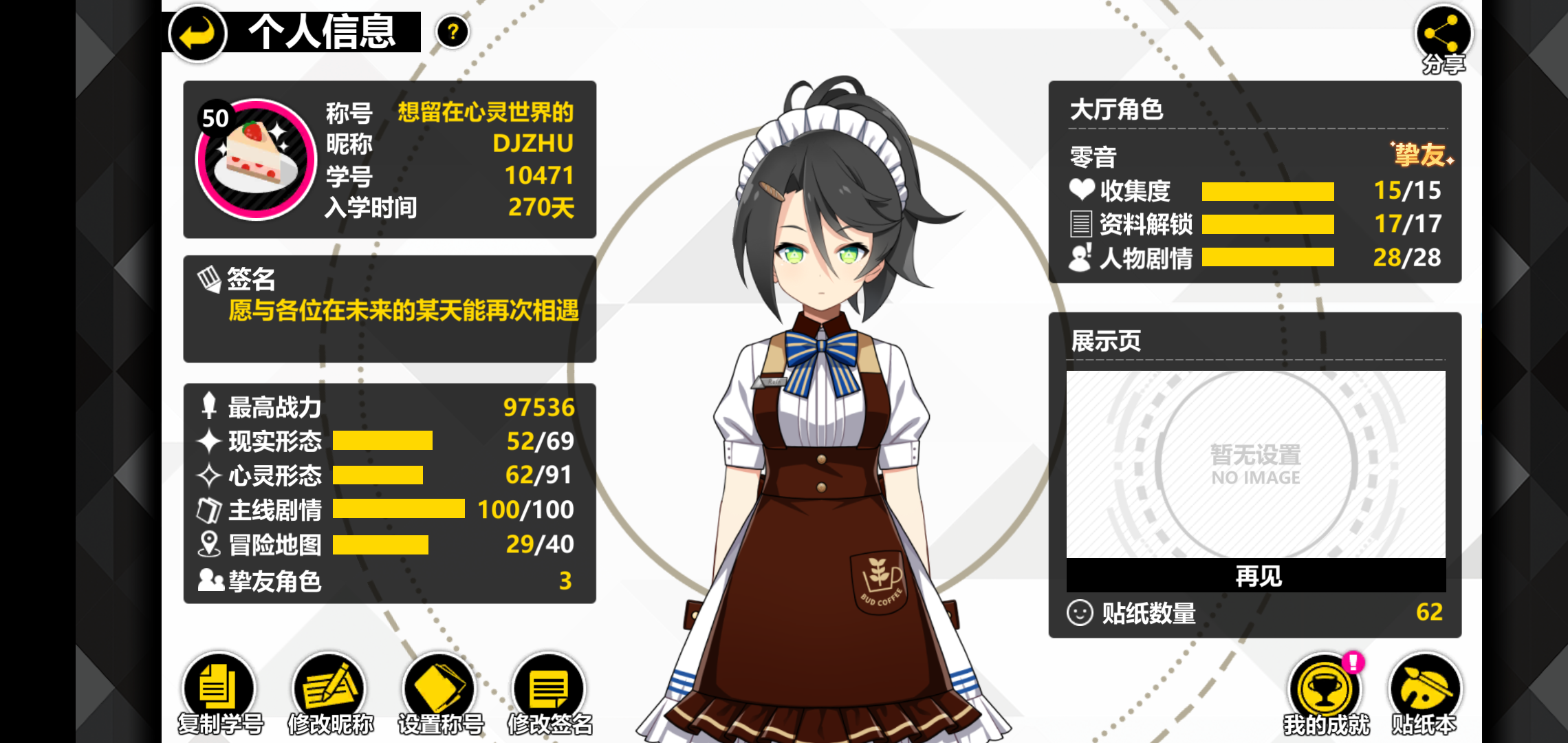 去年,我无意在taptap上看到了3阶光的头像(当时的图标),因为本人也很喜欢萌系画风,所以就点了进去,这一点,算是正式敲开了玩手机网游的大门。之前也玩过不少卡牌抽取类游戏,舰R,少前,还有几个都玩过,但正是因为对结婚机制的不感冒和剧情里女角的疯狂吹捧让我很不舒服,所以都没有玩太久。当时进去心战,还是3测,我当时就被游戏机制吸引到了,创新的转盘类玩法,而且和游戏角色间也终于有了相对平常些的关系(稍微的舔可以忽视)。加了官方3群,向大佬们请教,一起探索玩法,成为了我们这几个月的日常。后来的公测,炸服,辣鸡联动,等等的这一切,我都挺过来了,我总觉得这种主题和玩法新颖的游戏一定不会那么快就暴死,哪怕是后期对策划有多么不满。可在今天,该来的还是来了,一切都是那么理所当然。