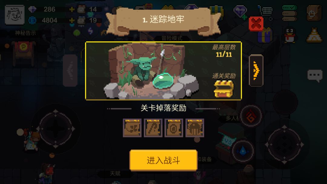 萌新经历的第一个冒险关就是迷踪地牢了,在这关里我们可以获得: