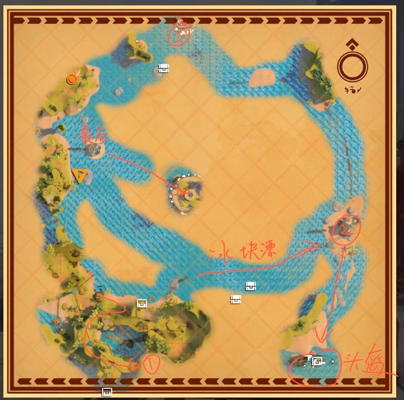 打的比较慢,刚打完大泄湖,一个简单的大体任务攻略。1号比较简单。冰块漂浮到2号任务点,打完先去废船的宝箱里取头盔,然后再去3号任务点(要潜水)。最后去地图上的点潜到水底,去最后任务。