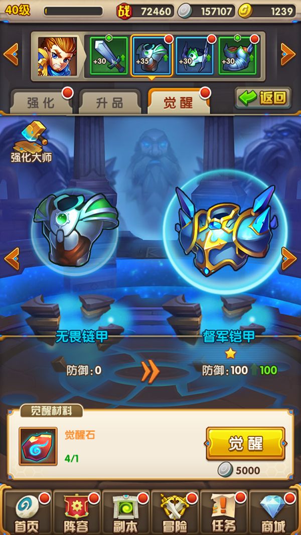 觉醒装备觉醒是游戏中期开放的一大功能,而消耗的材料是觉醒石和武器之魂,它们几乎是游戏中最难入手的道具。