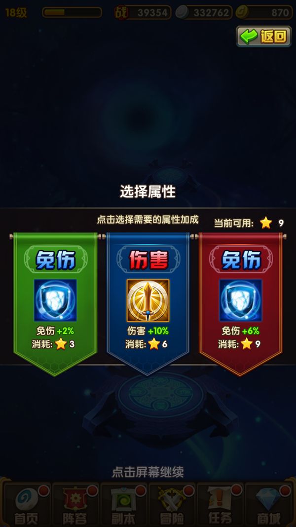 不过不用担心,每一个关卡都有三个难度供玩家选择,在任意难度下击败它们,都能获得胜利,前进的道路也随之开放。当然,击败不同的难度得到的不同的奖励和星数,而星数的作用会在后文提到。如果你拥有足够的战斗力,就尽情挑战最高的难度吧。