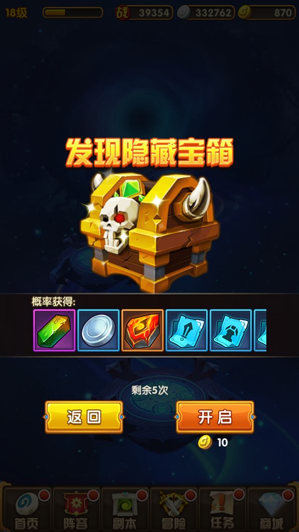 隐藏宝箱:只需要花费少量的金币,就可以从宝箱中开出时光水晶和装备设计图等稀有资源。