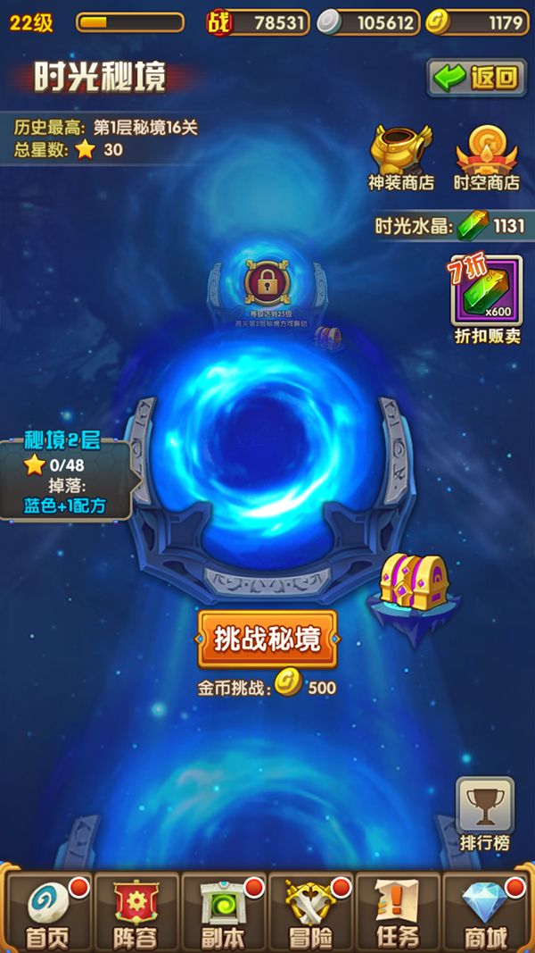 如何进入时光秘境?时光秘境是冒险中第三个开放的系统,当等级达到18级时,银翼游侠会引导你前往时光秘境。