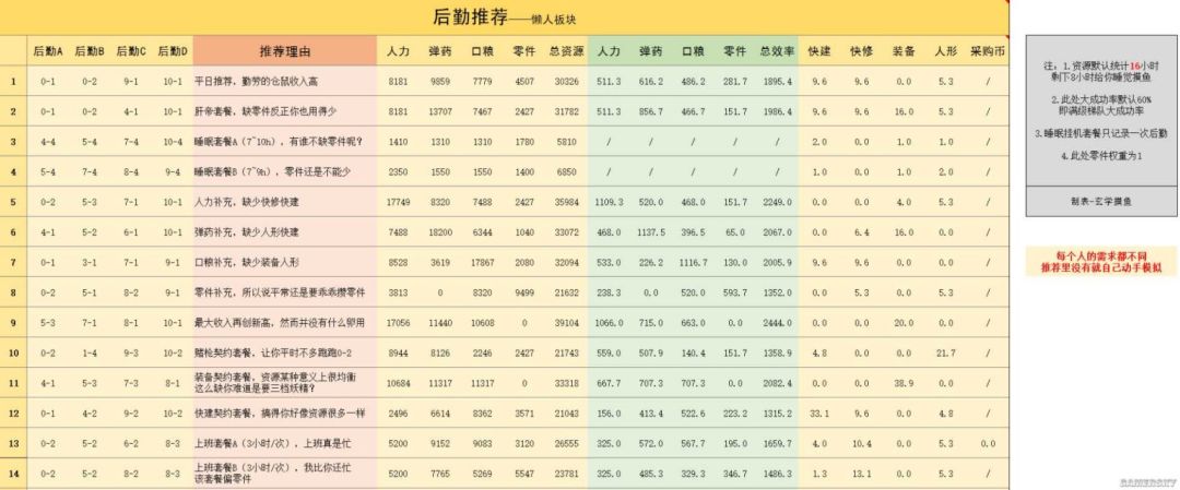 后勤组合推荐(懒人向):