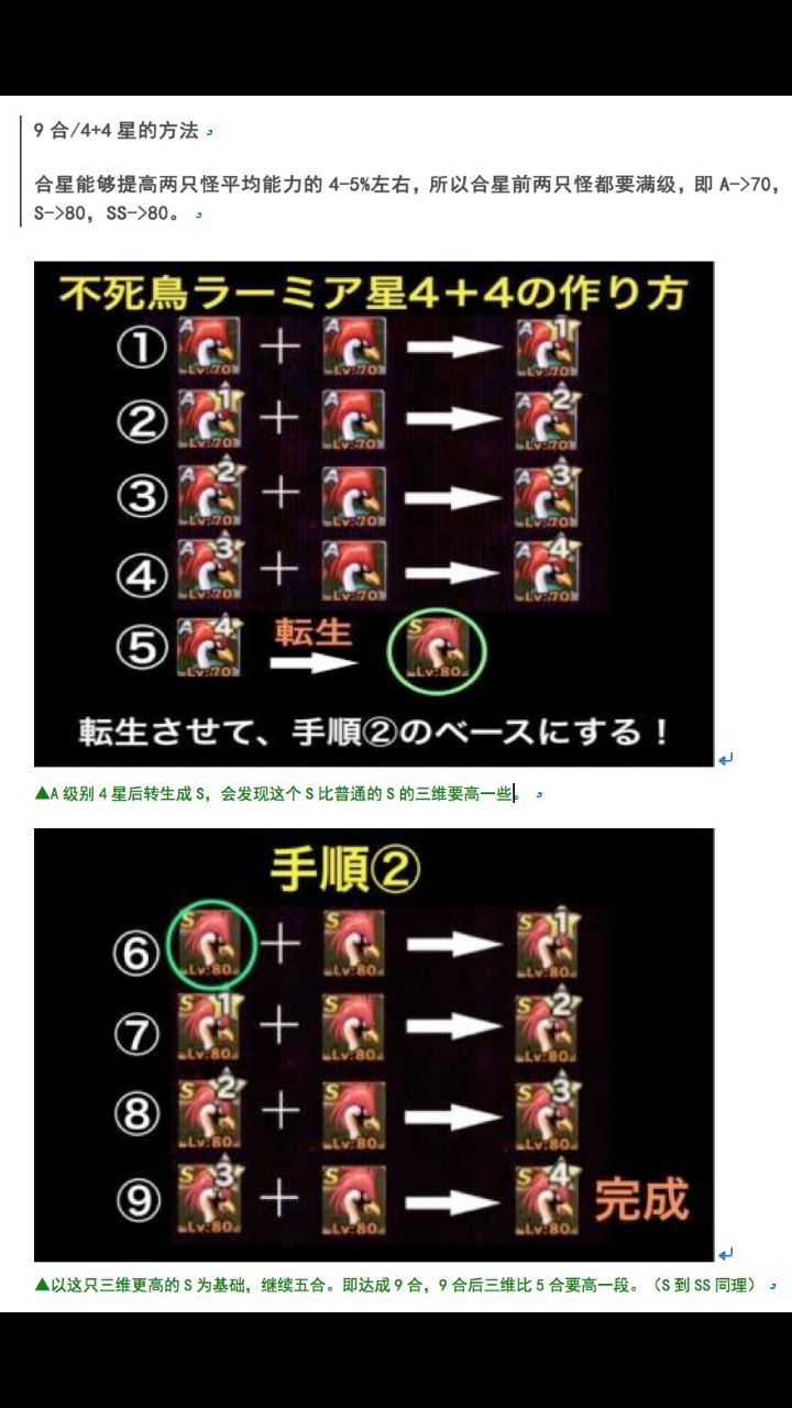 注:怪物需練至到怪物最高等級再可合星(這樣怪的屬性值最高);