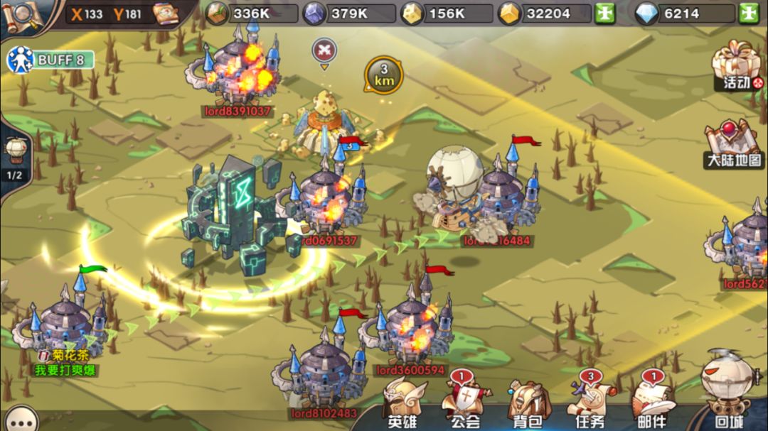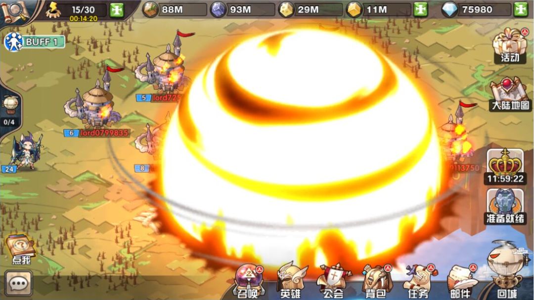 搭配上本身非常精致的卡通风格,整个游戏在玩耍的过程中,给人的感觉欢快又活泼,一点不会有其他同类游戏经常会出现的沉闷死板的感觉。而在这之上,游戏还提供了非常丰富的玩法玩点。大地图上抢夺遗迹,公会抱团占领中立建筑,使用中立建筑的功能来摧毁敌人,或是给自己增加BUFF,最终还能通过所有玩家投票,来竞选这片大陆的国王,可以说将SLG游戏的互动放大到了极致。