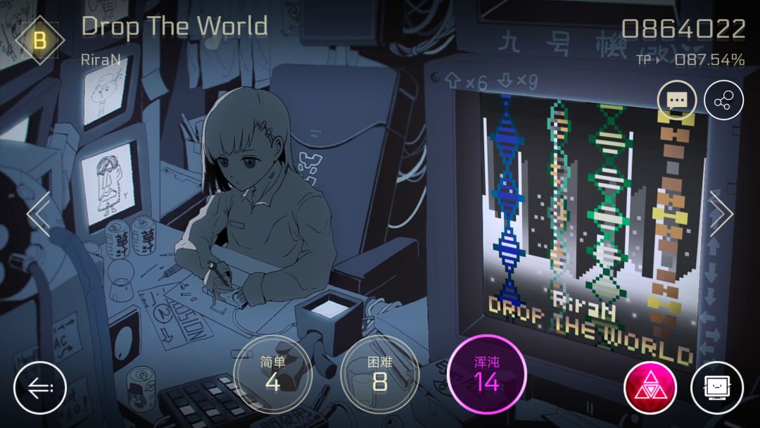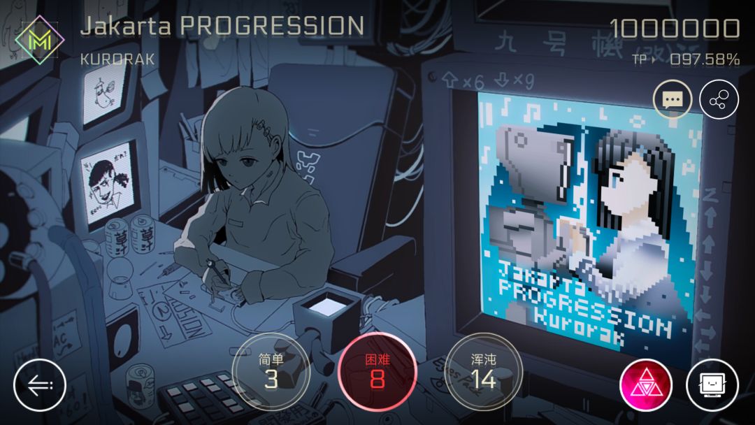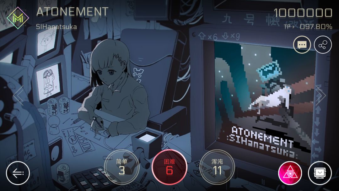 Nora是Cytus2在1.8版本的新人物,而且还是萝卜头的创造者,所以二者的曲风有很多相似之处。虽然小编我非常喜欢这个包,但并不是推荐所有人都优先氪这个小萝莉,具体原因我会在文章中说明。Nora包中歌曲的主打风格是电音,而且是那种充满能量,节奏爆炸high到不行的类型。小编是除夕那天买的,之后每天必打Nora,根本停不下来。而Nora的剧情则是发生在那个充满黑帮的11区——Node03,这对于一直建立于Node08的主线剧情来说是一次很必要的补充,因为好多角色的剧情都跟Node03挂钩,尤其是萝卜头的,相信不少玩家压根就不知道那一堆代码都说的啥。而在玩过Nora包之后,你就会知道那个萌萌的萝卜头不为人知的一面。接下来按惯例从曲包质量和剧情开始分析。