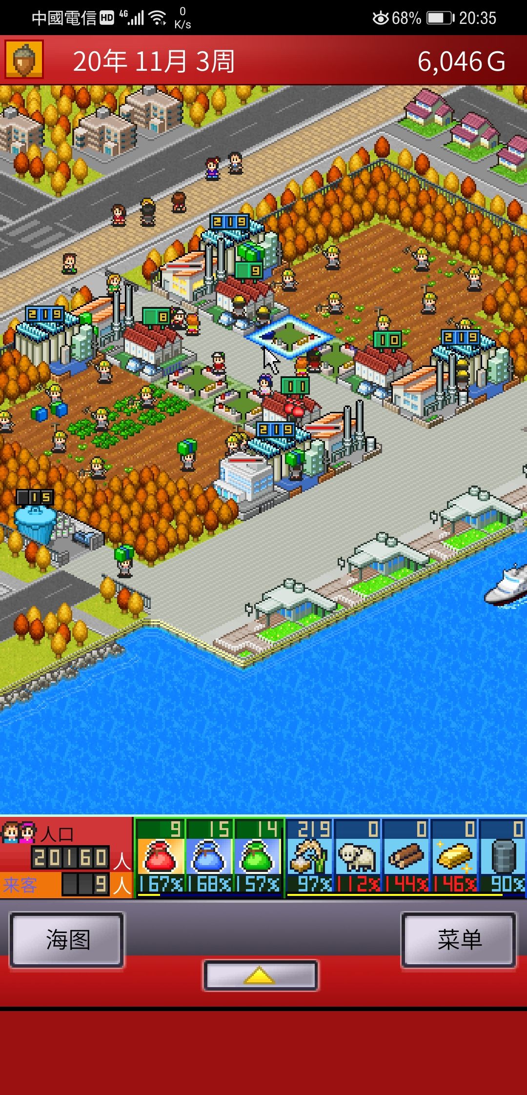 开局:建2-3块田地 提高产品生产效率 当供大于求发生时建1-2个直销店 前期基本就是这样 维护费不高 赚钱速度还可以 不建议开拓海图和进口物资