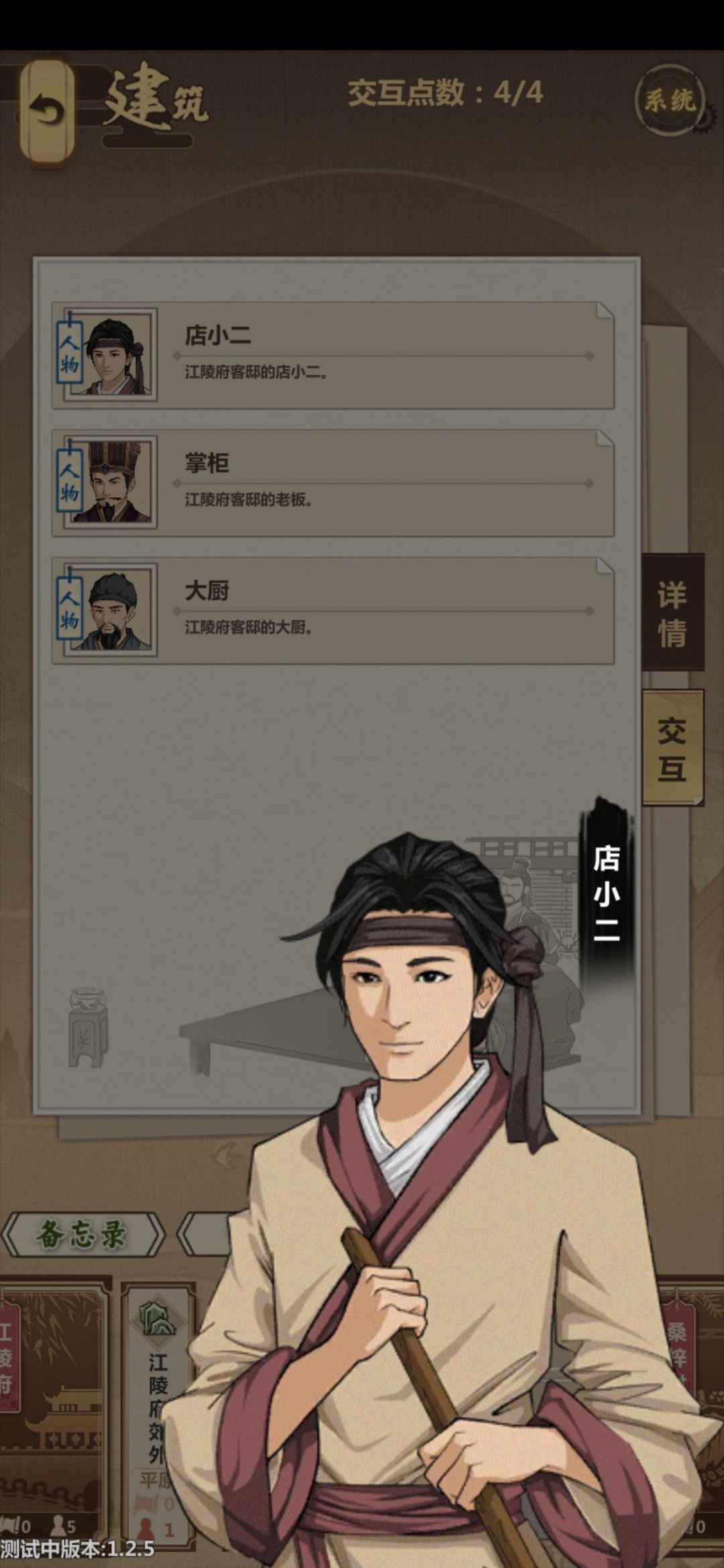 点击购买酒菜后,页面会卡住,只能退出游戏读档。