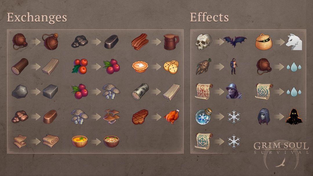 我们决定创建一个完整的名单,所有的产品及其保证的效果,目前存在于游戏中。记住所有这些贡品的比例都是1: 1,所以你只需要一个物体的1个单位就可以引起你想要的事件或者召唤一个对手。