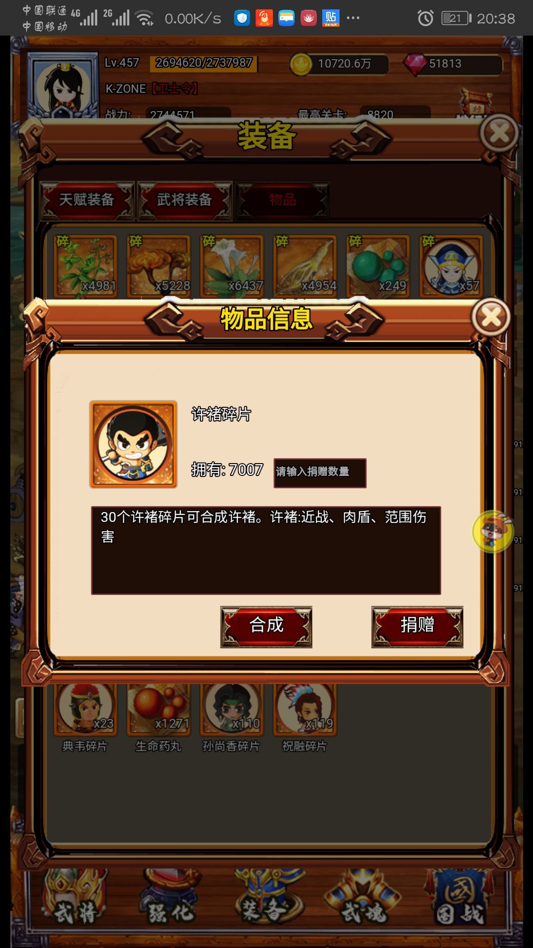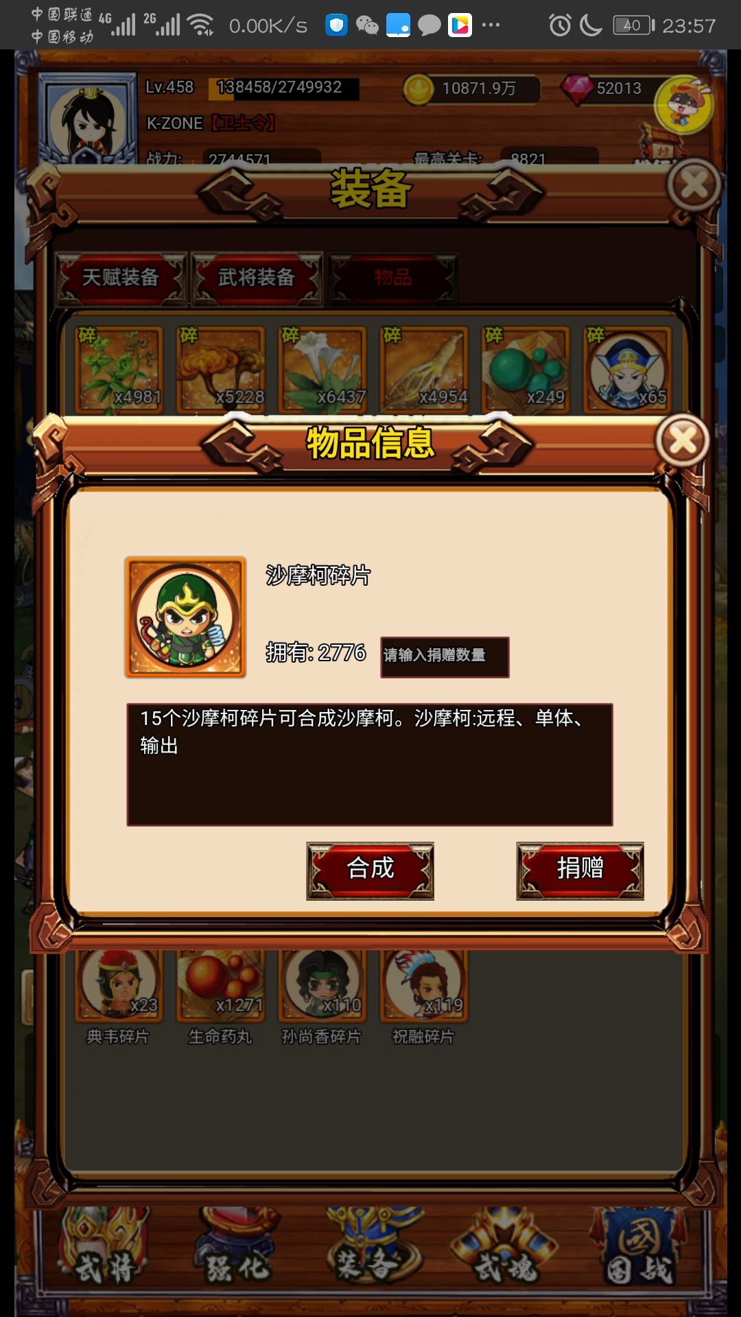 理由:攻速提高100%,试想一下配上暴击暴伤装备,绝逼平a无差别碾压。公认最强远程(这点绝对不存在任何非议),唯一缺点就是碎片不好拿,开箱难过中彩票头奖,主要途径是占领极个别城池,国战商城兑换以及限定礼包和充值,简单的说,想得到要么像我至少打出个万年老二,要么氪金。