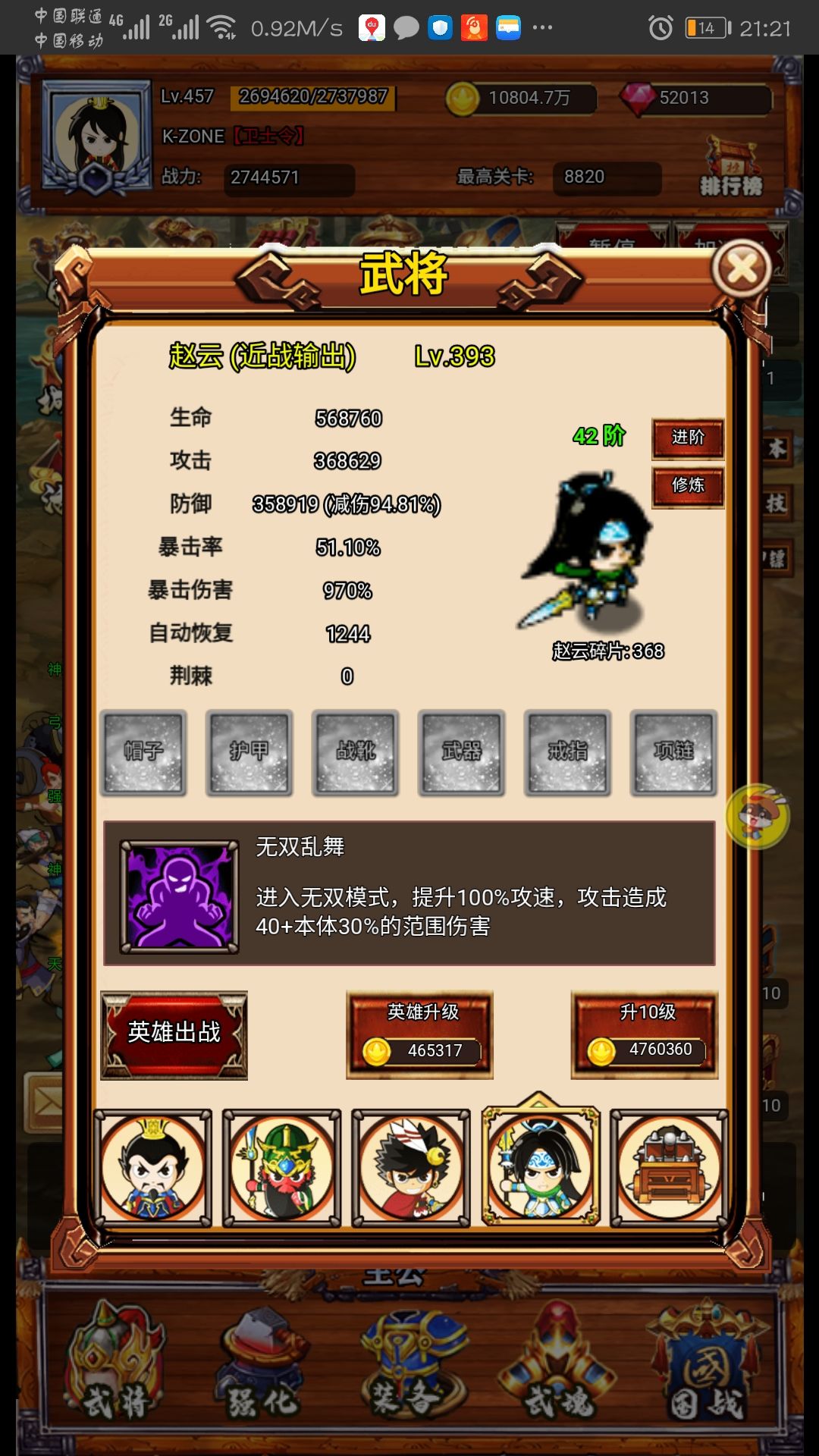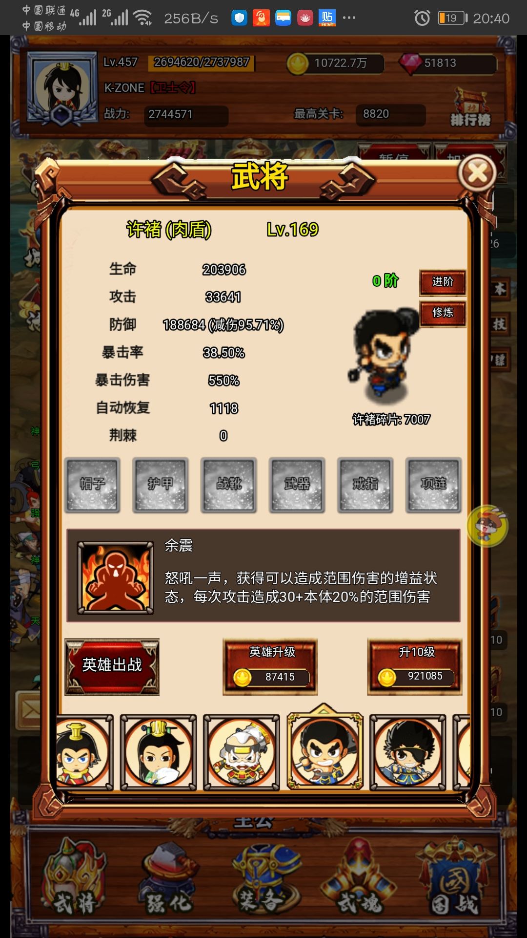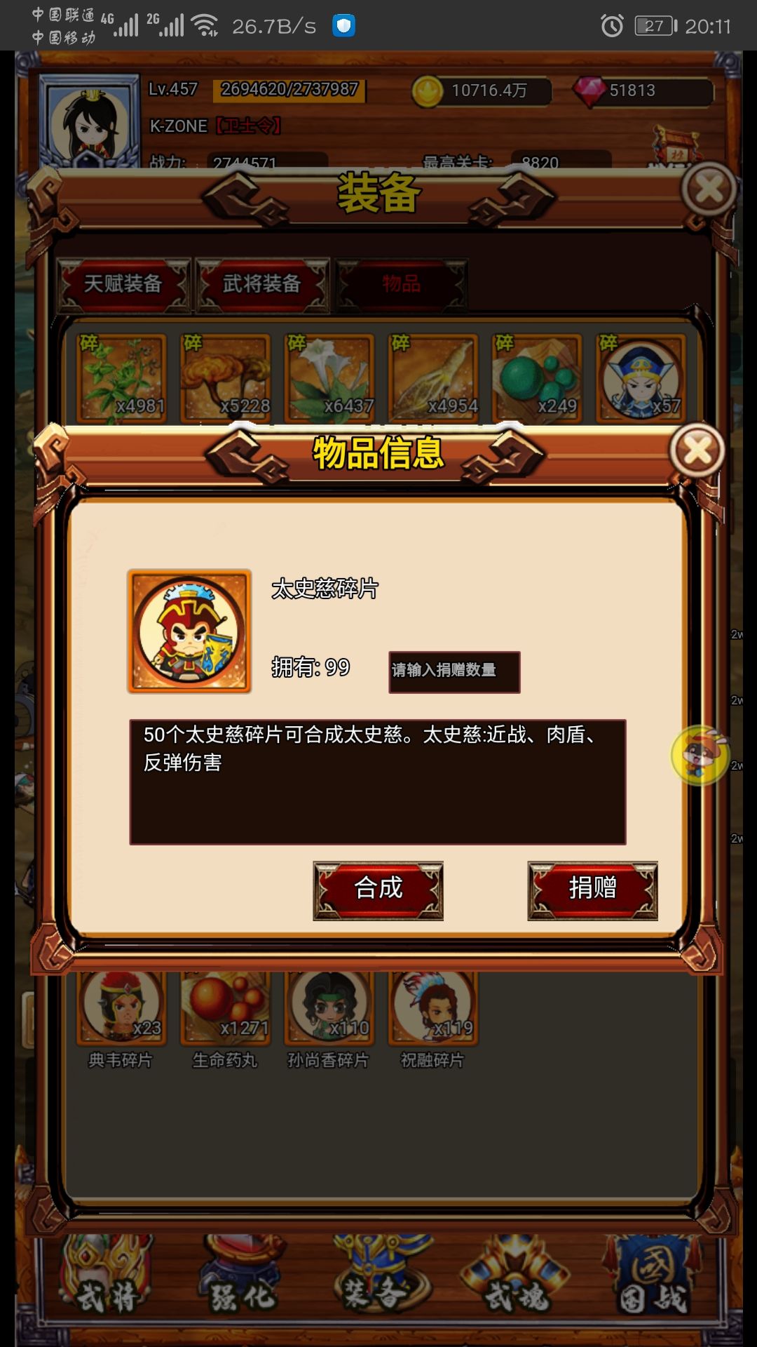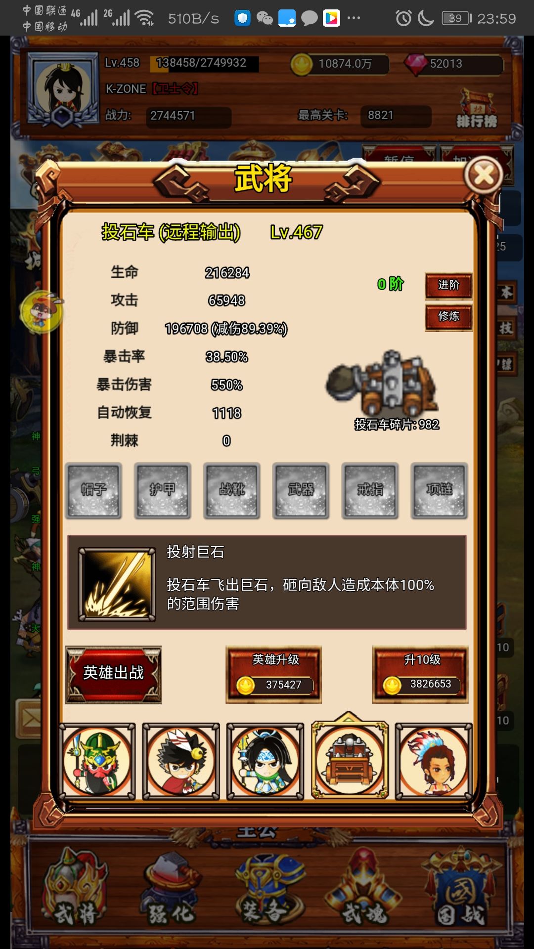 小结:肉盾除了太史慈到目前我还有用,其他的都是放仓库了,肉盾大多数都是用在前中期,到了后期你根本没法防住多少波,而且推图关键还是看攻击力,最好的防守就是进攻,所以肉方面除了太史,其他不需要投入太多。