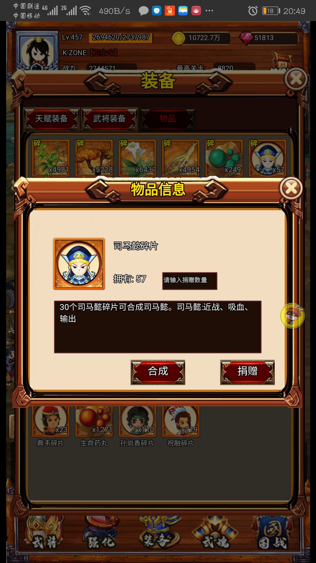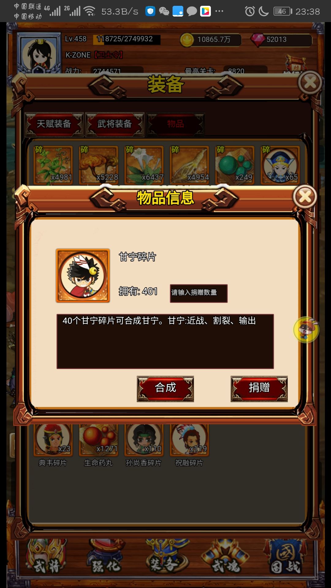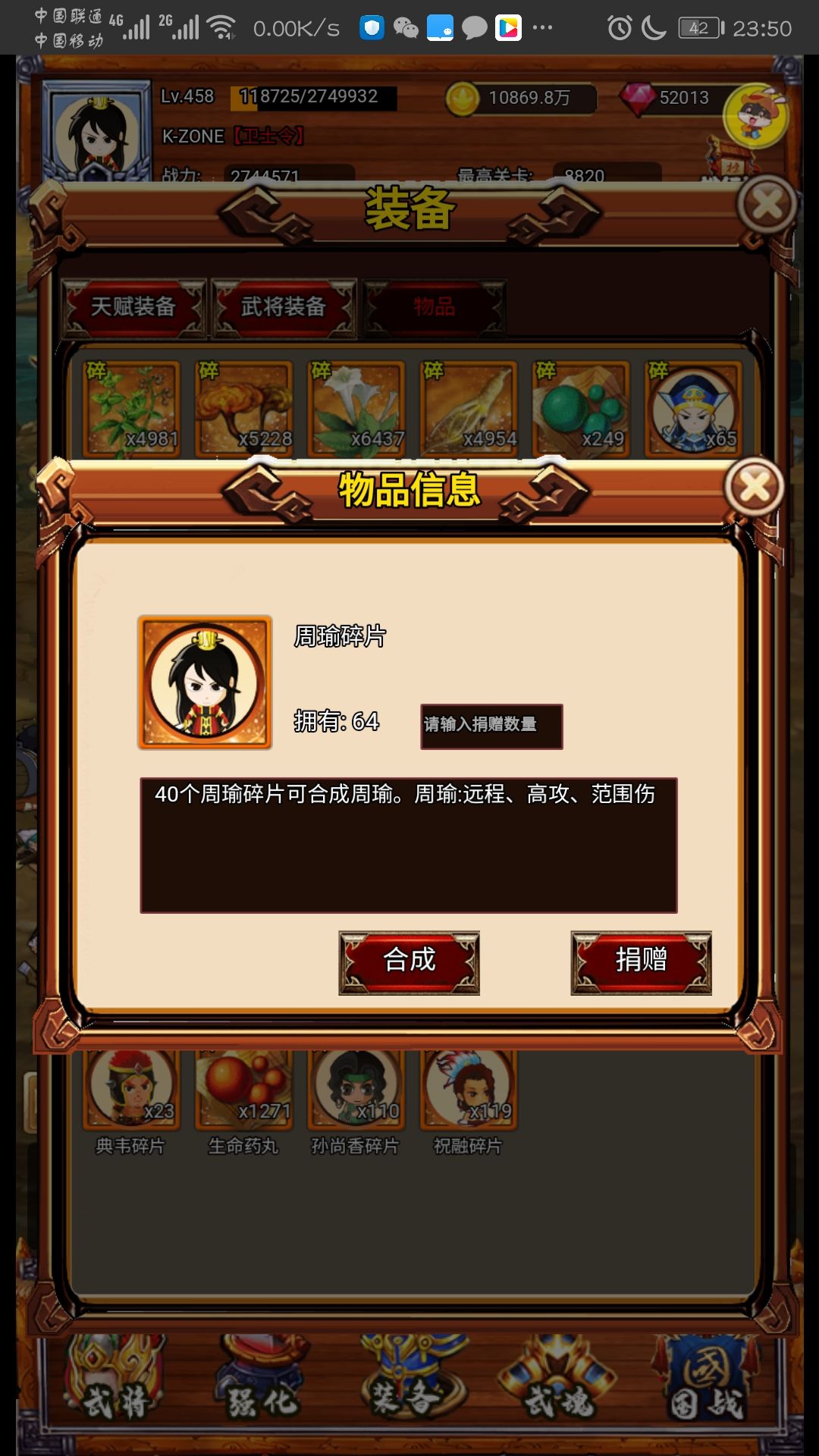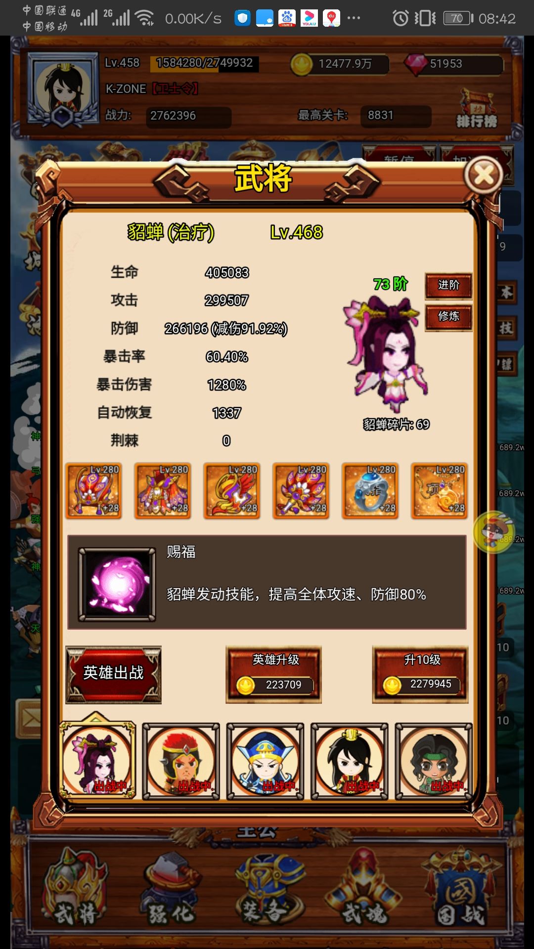 小结:肉盾除了太史慈到目前我还有用,其他的都是放仓库了,肉盾大多数都是用在前中期,到了后期你根本没法防住多少波,而且推图关键还是看攻击力,最好的防守就是进攻,所以肉方面除了太史,其他不需要投入太多。