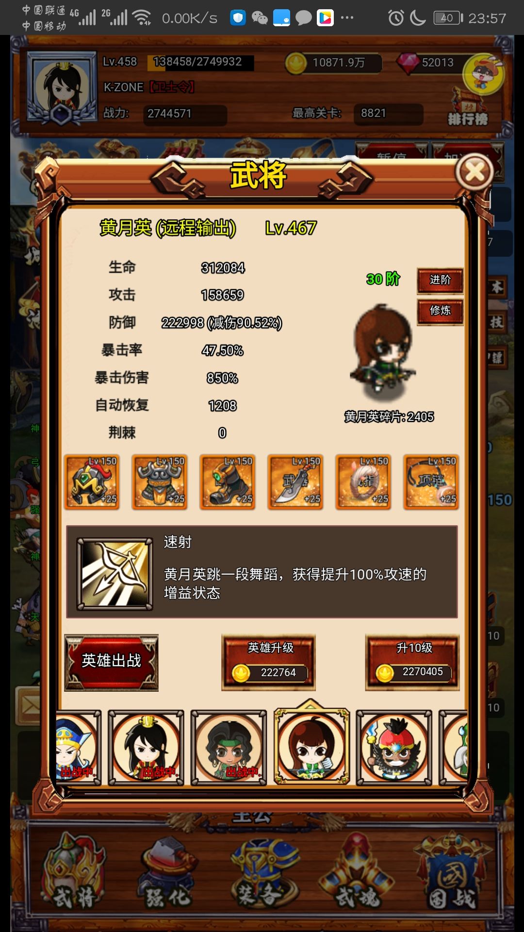 获取方法都说完以后,就需要介绍一下不同种类英雄的梯队了,武将版面基本数据可忽略(科普:除奶妈外,武将技能基本都能触发暴击,数值与攻击力挂钩)