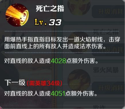 洛基的一技能死亡之指是洛基的常用伤害技能,伤害数值随着等级的提升而提高