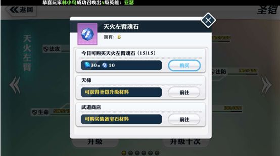 升级所需的魂石用钻石直接购买或者可以在天梯中进行获取