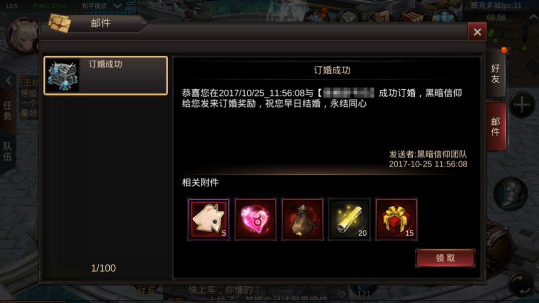 成功订婚后,由任意一方订婚的玩家截图并按下列格式在本帖回复,即可参与。