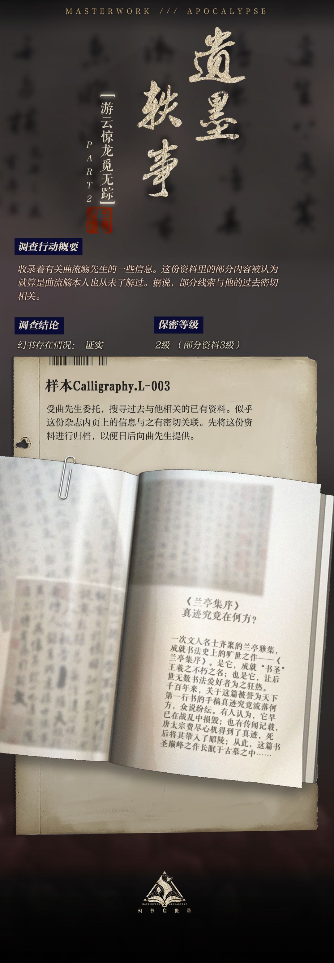 这篇被誉为天下第一行书的手稿真迹究竟流落何方?有传说它已随唐太宗陪葬昭陵;也有人说早已毁于战火......未得真相前,谁也不敢妄下断言——他,更是如此。