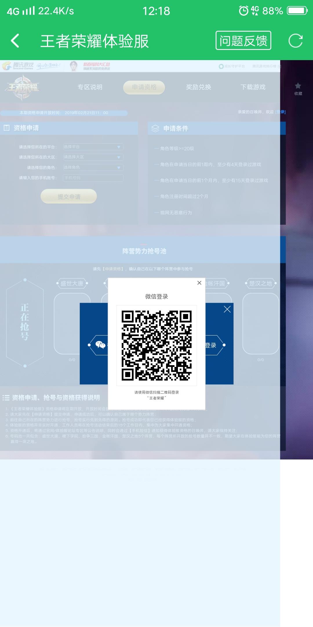 就是鄙人想申请一个微信王者体验服可是点击微信登录,就出现二维码
