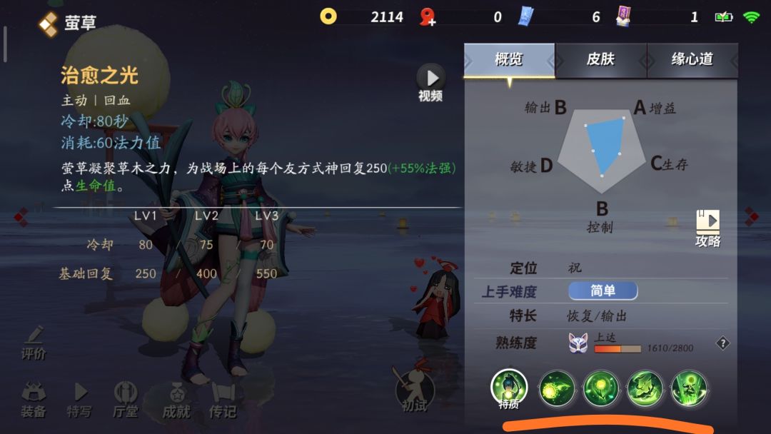 这是莹草爸爸的主要回复技能,值得注意的是直接点技能是默认对血量百分比最少的角色加血,传递也是给另外一个血量百分比低的式神,团战一技能首要目标放给谁是关键。