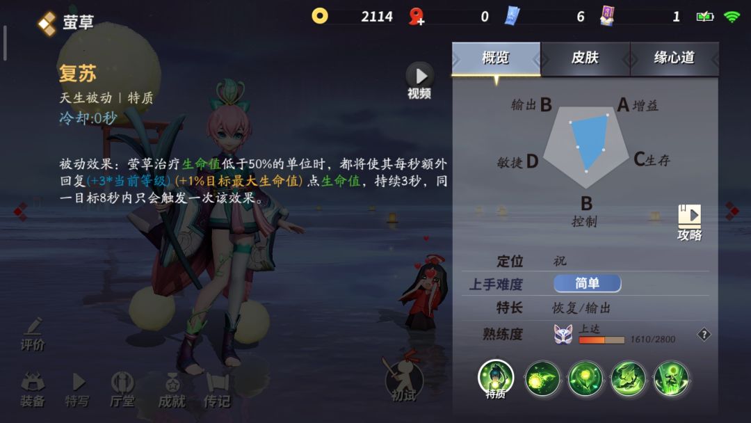 这是萤草爸爸的回复技能之一,同时也是消耗技能,一级推荐加点该技能,叮一下用来触发辅助装被动打钱,越打越痛其实很鸡肋,毕竟是辅助。