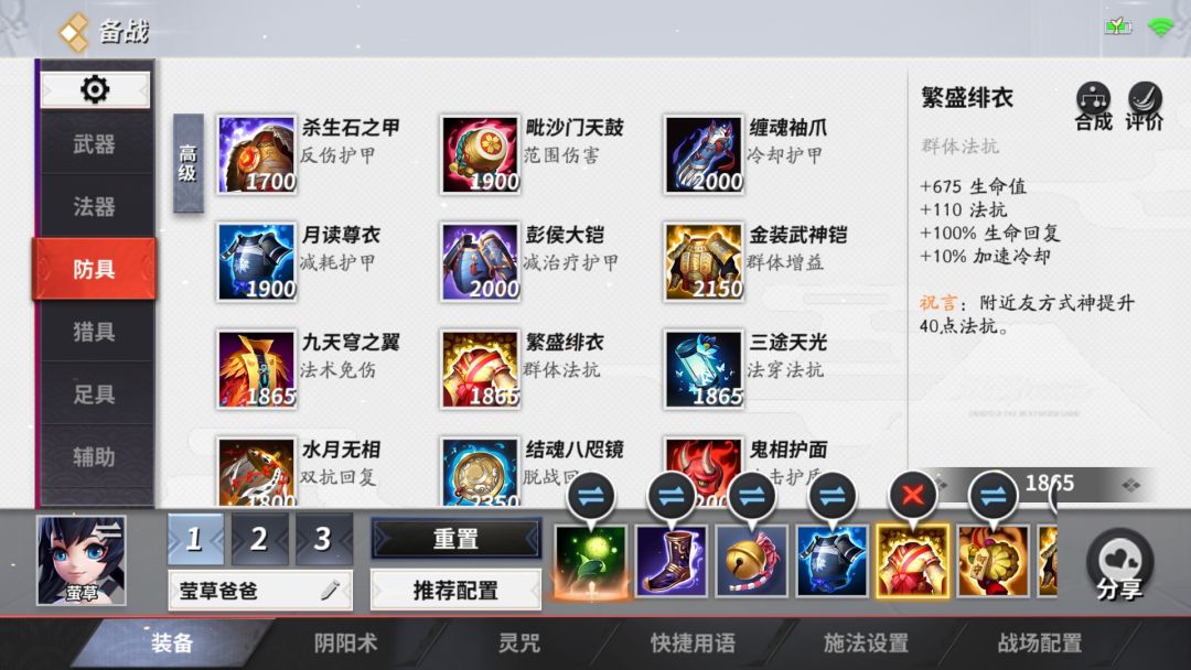 这装备是帮莹草爸爸充魔加生命值抗减cd的同时时为队友加魔抗,增加生存能力。