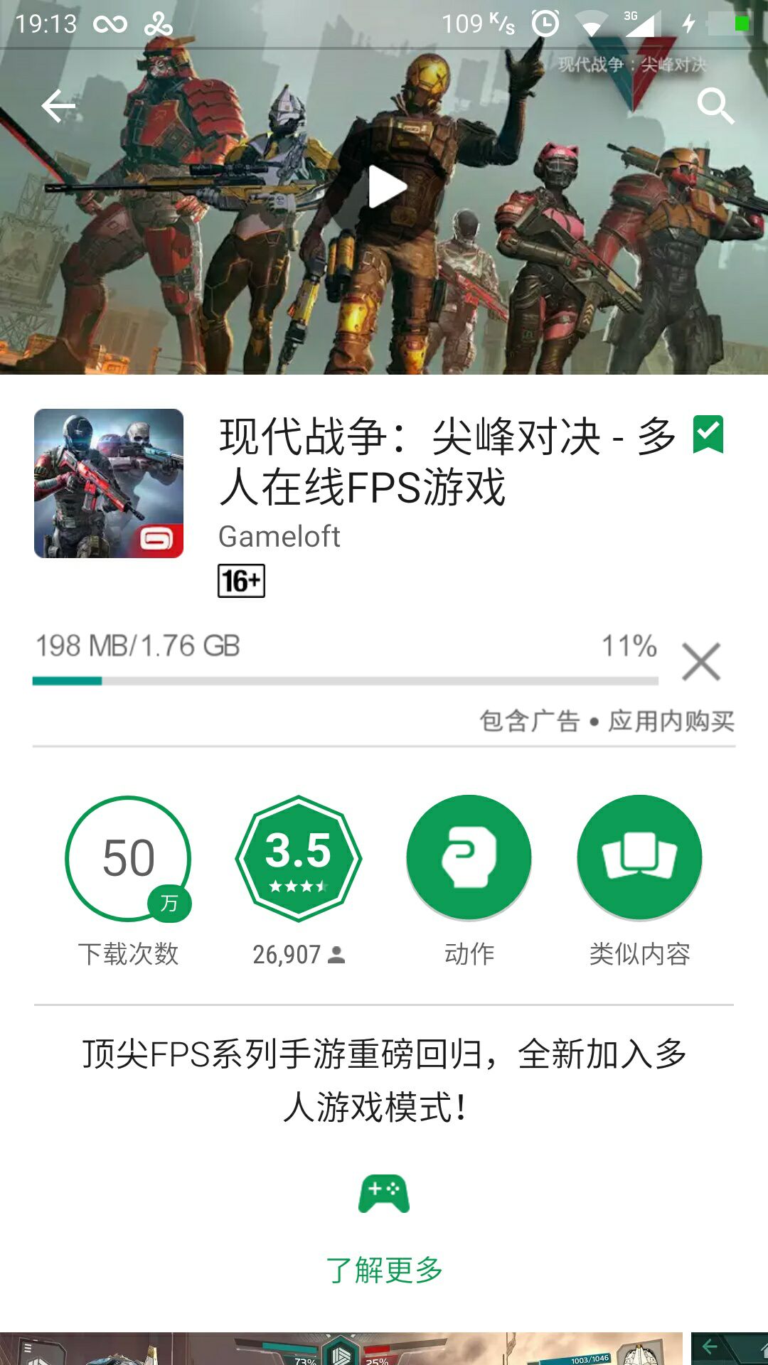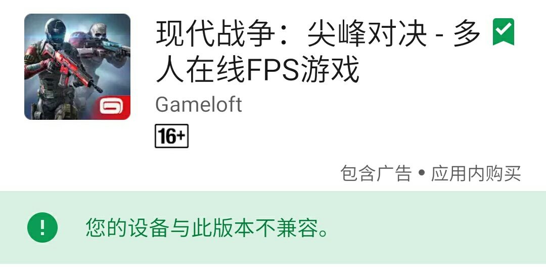 [问题说明]现代战争:尖峰对决是Gameloft旗下的一款多人在线FPS游戏,然而所有Gameloft旗下的游戏必须都得在GooglePlay的支持下才能成功运行,所以你的手机必须要有Google全家桶
