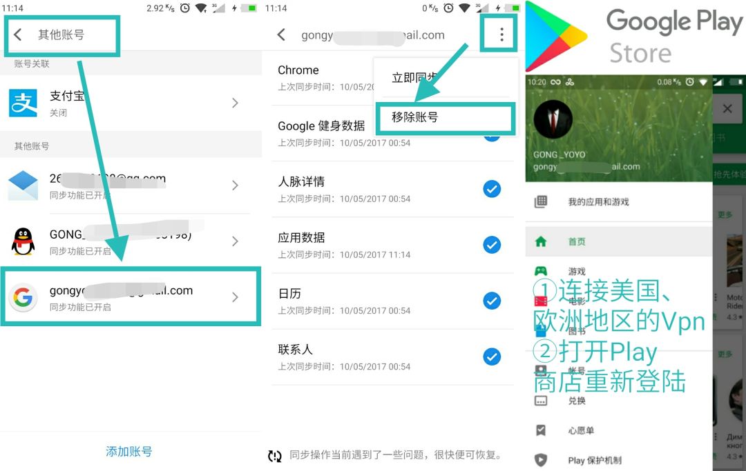 [解决方案]打开系统设置→其他账号→移除Google账号→换个Vpп节点(建议美国、欧洲地区)→重新登陆Play商店查看