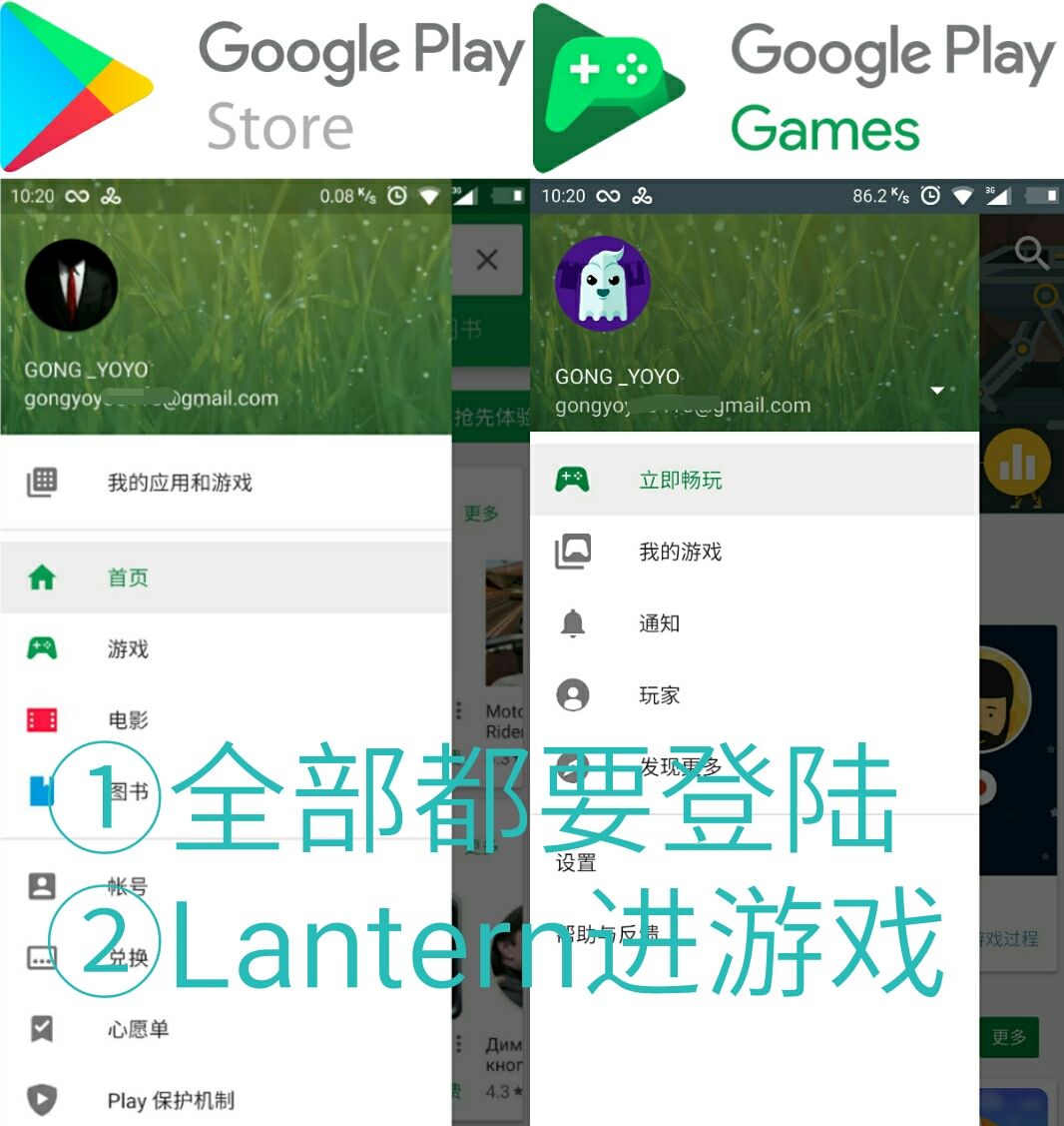 [解决方案]同理下载安装Google全家桶,并登陆Play商店、Play 游戏,一定要事先登陆上!!!然后连Vpп进游戏,再点击"获取游戏"→跳转到Play商店验证,本贴用的是Lantern进去了,如果你所在的国家无法下载,请在系统设置(其他账号)内移除Google账号,换个Vpп节点(建议美国、欧洲地区)然后再重新登陆Play商店查看[Google账号注册教程→点击跳转←]
