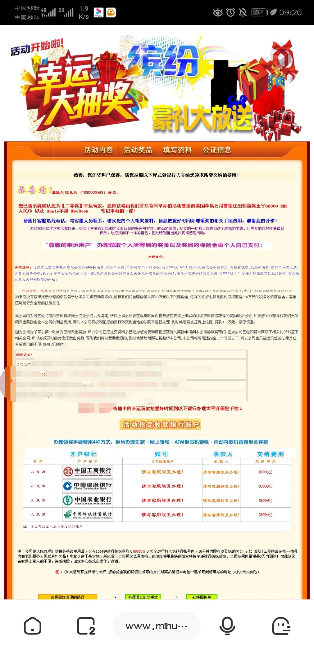 今天玩游戏的时候有个叫“系统l”的用户给我私发信息告诉我,我淘米公司后台抽奖中奖了。说实话能不能增加一些举报系统,比较完善的举报系统 这比广告还恶心。我是九游服务器的。