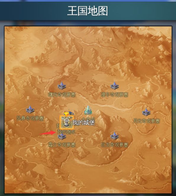 当占领下据点后,可点击左侧的“王国地图”按钮进入王国地图,在图中可以看到自己所占领的据点,点击“我的据点”就会跳到据点的位置,方便领取礼包不用满地图找。