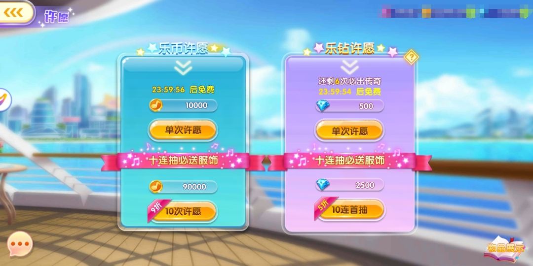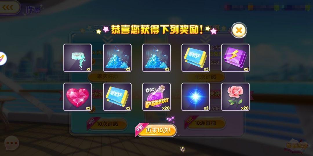 第四种就是许愿池了,一般这种方法你金币多的话开十次许愿,总会开出经验卡来,不仅能得经验卡还能得一些药水和魅力礼物和服装,一举多得。
