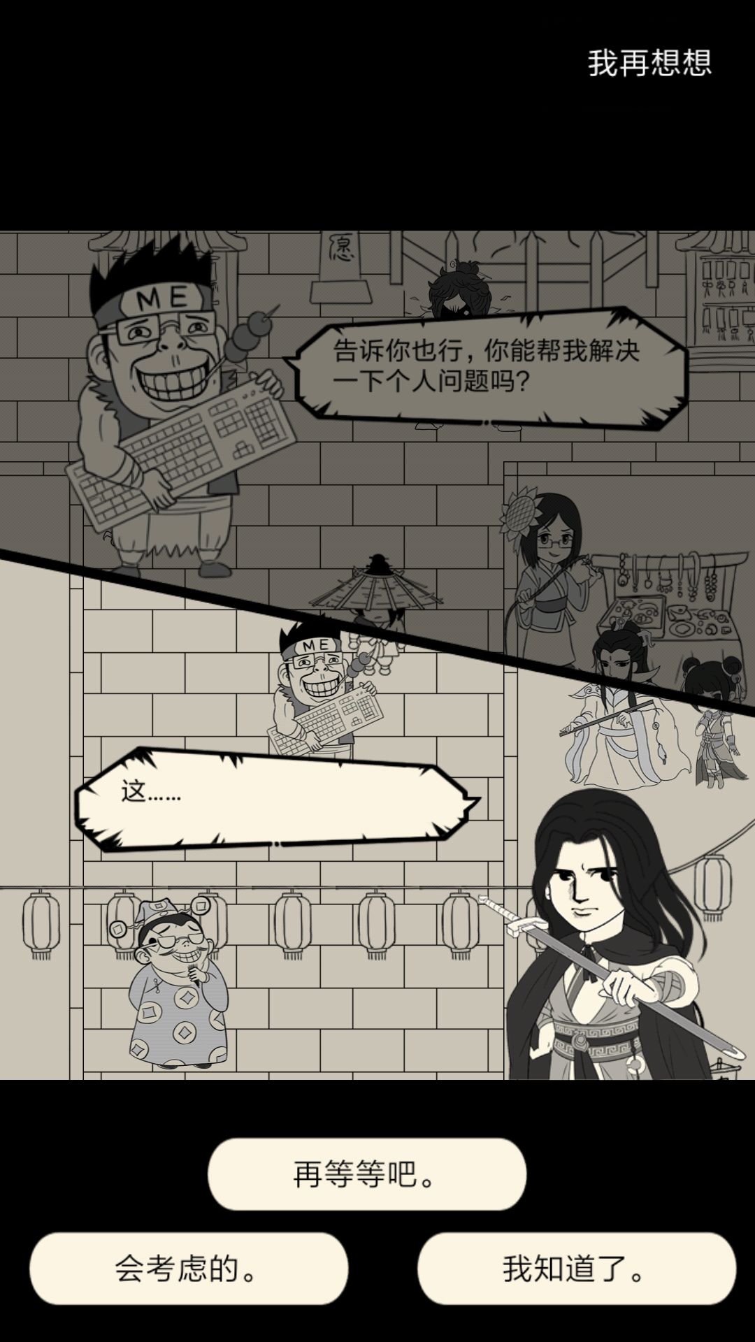3.再等等吧。到平安镇老婆婆家里对话老婆婆,回来找大me即可完成任务(任务完成奖励感谢信和银两潜能2333),注意这里只有第三个选项才能获得江湖经验,大家请仔细考虑如何选择。