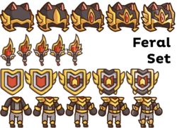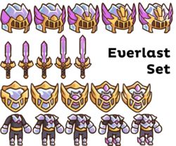 除了新手套装和活泥人套装,其他套装不会完整的掉落。要获得完整的套装,你需要从各地区的商人处用黄金和特定材料购买剩下的装备。某些套装可能完全不会掉落,所以要做好准备。