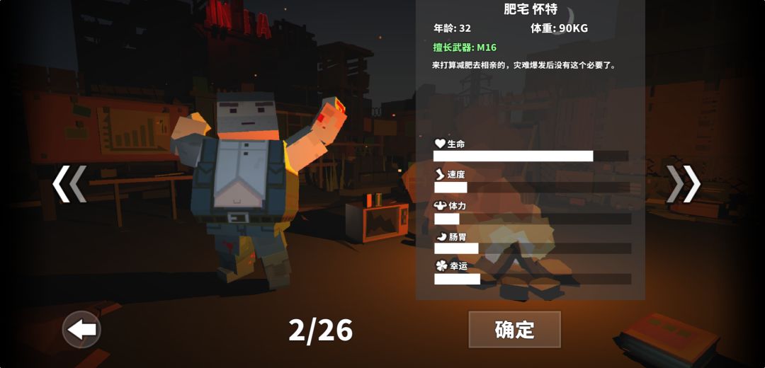 肥宅快乐哥,生命值恐怖,可以抗住5只狗群殴2秒,缺点是除了生命其他属性都比较低,耐力速度饱食都撑不住,不太推荐使用