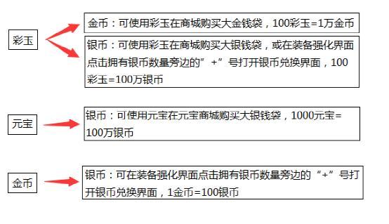 第二类:元宝和金币,这两种货币之间不可互相转换,但是都可以转换为银币