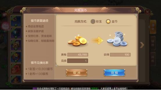2)、可用于兑换成银币进行装备强化、宠物强化、技能升级、人物修炼等
