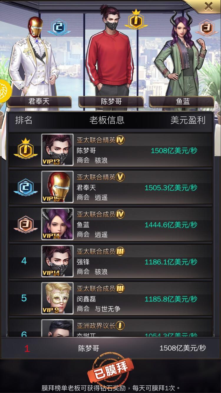 浪费了三个月,充了二万八,感觉越出越辣鸡!玩着没意思,这次改版还出了什么赛车场和石油!没这个精力去消耗了!出了此号,商会榜都是第一的会长!赚钱榜第一,实力榜第二,二十四红车,助理三红一橙,v13差二千v14 苹果系统1917区!一千块甩了,骗子勿扰!再带送五个二万左右小号!