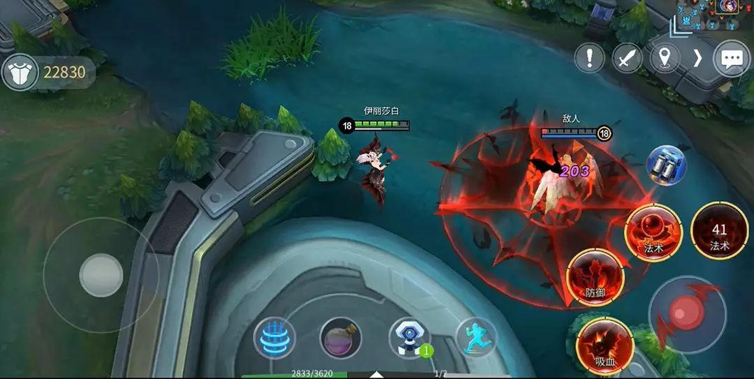法术/回血召唤一只蝙蝠攻击敌人,造成魔法伤害,蝙蝠飞回时为伊丽莎白恢复生命。连续2次施放吸血蝙蝠后,可施放强化吸血蝙蝠。强化吸血蝙蝠,伤害量和恢复量极大提高。使用后可获得短暂加速。